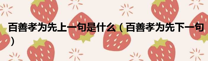 百善孝为先上一句是什么(百善孝为先下一句)