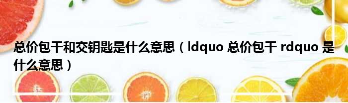 总价包干和交钥匙是什么意思(ldquo 总价包干 rdquo 是什么意思)