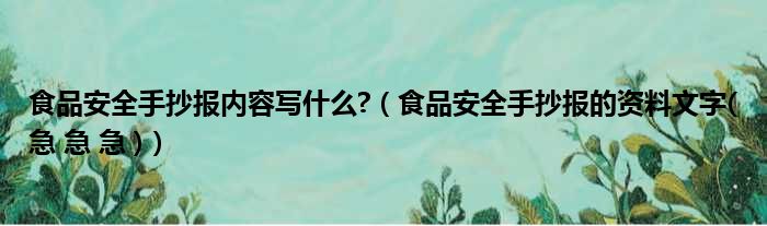 食品安全手抄报内容写什么?(食品安全手抄报的资料文字(急 急 急 ))