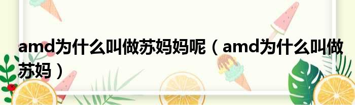amd为什么叫做苏妈妈呢(amd为什么叫做苏妈)