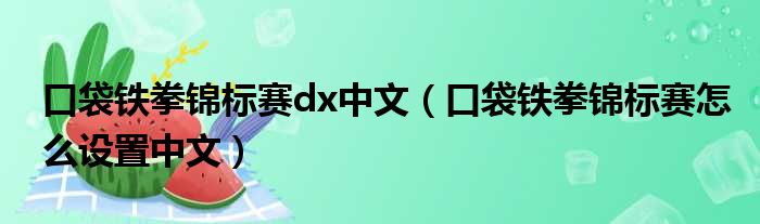 口袋铁拳锦标赛dx中文(口袋铁拳锦标赛怎么设置中文)