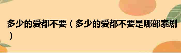 多少的爱都不要(多少的爱都不要是哪部泰剧)