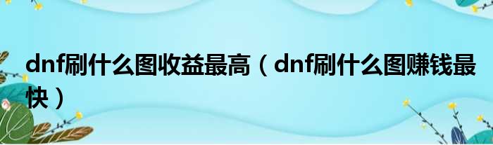 dnf刷什么图收益最高(dnf刷什么图赚钱最快)