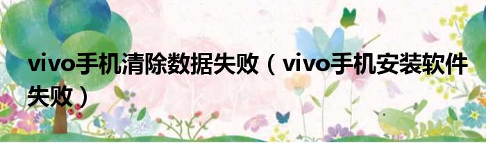 vivo手机清除数据失败(vivo手机安装软件失败)