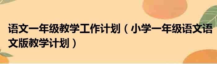 语文一年级教学工作计划(小学一年级语文语文版教学计划)