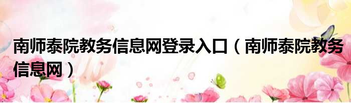 南师泰院教务信息网登录入口(南师泰院教务信息网)