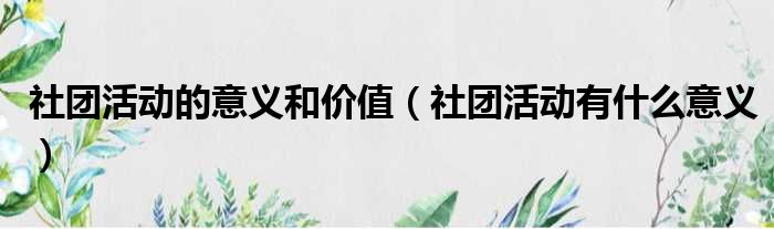 大家好,小东方来为大家解答以上的问题。社团活动的意义和价值,社团活动有什么意义这个很多人还不知道,现在让我们一起来看看吧!