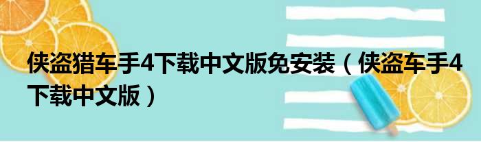 侠盗猎车手4下载中文版免安装(侠盗车手4下载中文版)