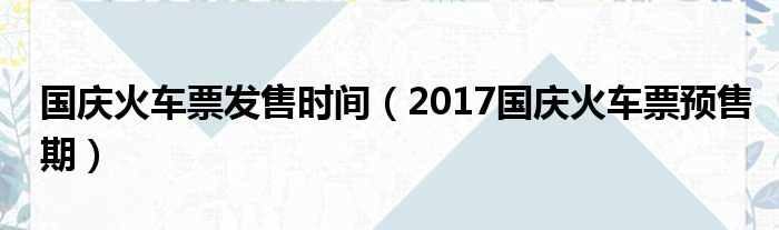 大家好,小东方来为大家解答以上的问题。国庆火车票发售时间,2017国庆火车票预售期这个很多人还不知道,现在让我们一起来看看吧!