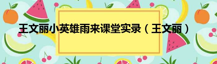 大家好,小东方来为大家解答以上的问题。王文丽小英雄雨来课堂实录,王文丽这个很多人还不知道,现在让我们一起来看看吧!