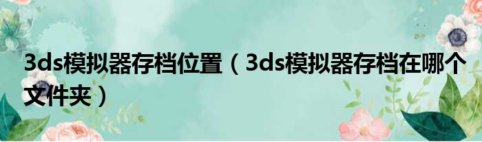 3ds模拟器存档位置(3ds模拟器存档在哪个文件夹)