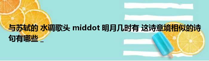 与苏轼的 水调歌头 middot 明月几时有 这诗意境相似的诗句有哪些 _