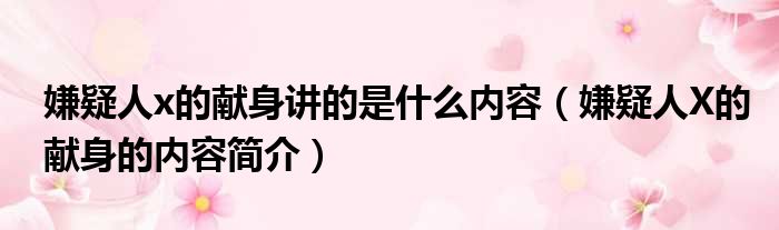 嫌疑人x的献身讲的是什么内容(嫌疑人X的献身的内容简介)