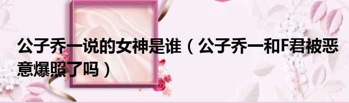 公子乔一说的女神是谁(公子乔一和F君被恶意爆照了吗)