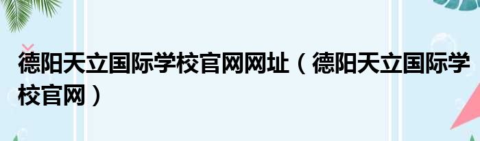 德阳天立国际学校官网网址(德阳天立国际学校官网)