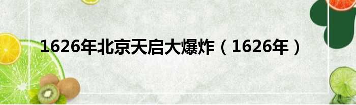 大家好,小东方来为大家解答以上的问题。1626年北京天启大爆炸,1626年这个很多人还不知道,现在让我们一起来看看吧!