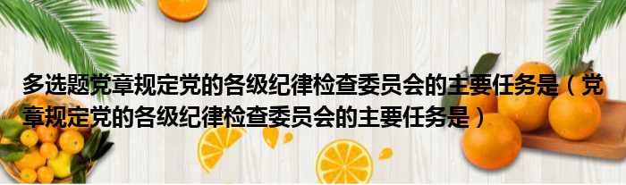 多选题党章规定党的各级纪律检查委员会的主要任务是(党章规定党的各级纪律检查委员会的主要任务是)