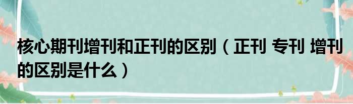 核心期刊增刊和正刊的区别(正刊 专刊 增刊的区别是什么)
