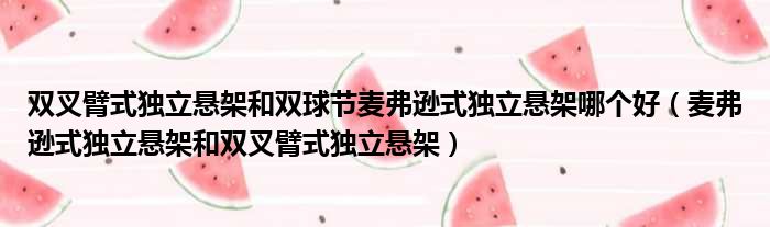 双叉臂式独立悬架和双球节麦弗逊式独立悬架哪个好(麦弗逊式独立悬架和双叉臂式独立悬架)