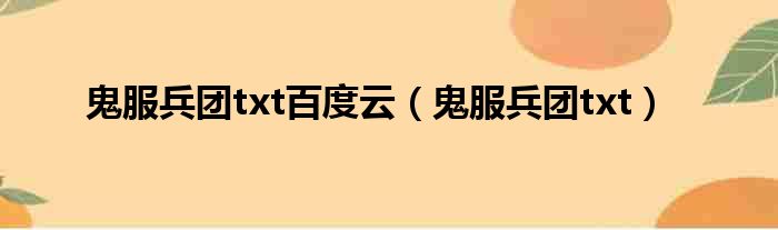 鬼服兵团txt百度云(鬼服兵团txt)