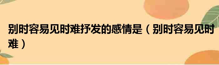 大家好,小东方来为大家解答以上的问题。别时容易见时难抒发的感情是,别时容易见时难这个很多人还不知道,现在让我们一起来看看吧!