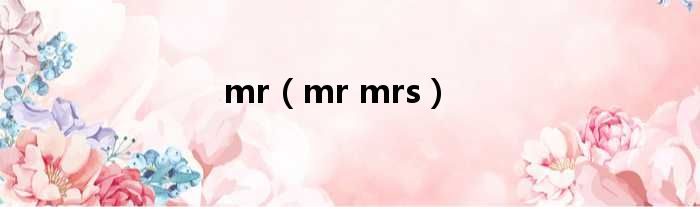 大家好,小东方来为大家解答以上的问题。mr,mr mrs这个很多人还不知道,现在让我们一起来看看吧!