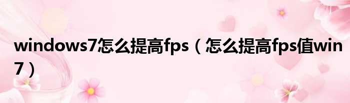windows7怎么提高fps(怎么提高fps值win7)