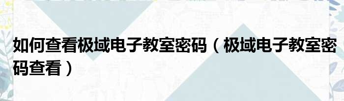 如何查看极域电子教室密码(极域电子教室密码查看)
