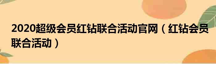 2020超级会员红钻联合活动官网(红钻会员联合活动)