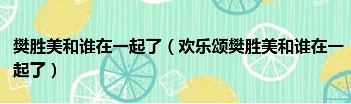 樊胜美和谁在一起了(欢乐颂樊胜美和谁在一起了)