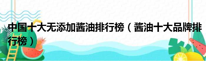 中国十大无添加酱油排行榜(酱油十大品牌排行榜)