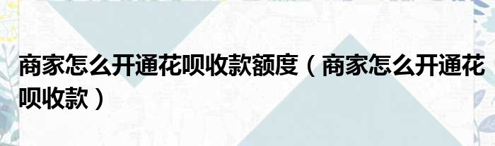 商家怎么开通花呗收款额度(商家怎么开通花呗收款)
