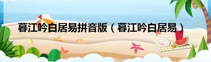 大家好,小东方来为大家解答以上的问题。暮江吟白居易拼音版,暮江吟白居易这个很多人还不知道,现在让我们一起来看看吧!