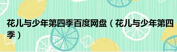 花儿与少年第四季百度网盘(花儿与少年第四季)