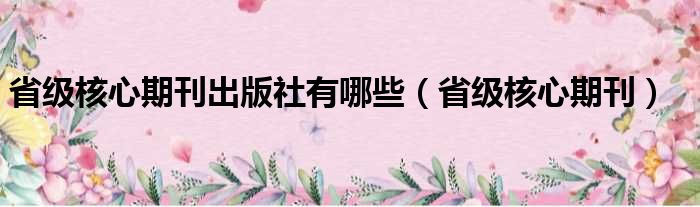 大家好,小东方来为大家解答以上的问题。省级核心期刊出版社有哪些,省级核心期刊这个很多人还不知道,现在让我们一起来看看吧!