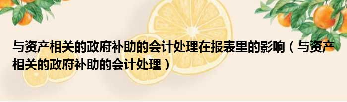 与资产相关的政府补助的会计处理在报表里的影响(与资产相关的政府补助的会计处理)