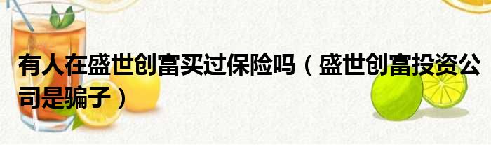 有人在盛世创富买过保险吗(盛世创富投资公司是骗子)