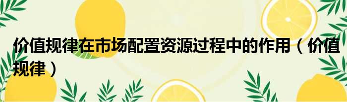 大家好,小东方来为大家解答以上的问题。价值规律在市场配置资源过程中的作用,价值规律这个很多人还不知道,现在让我们一起来看看吧!