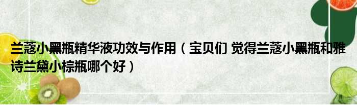 大家好,小东方来为大家解答以上的问题。兰蔻小黑瓶精华液功效与作用,宝贝们 觉得兰蔻小黑瓶和雅诗兰黛小棕瓶哪个好这个很多人还不知道,现在让我们一起来看看吧!