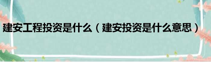 大家好,小东方来为大家解答以上的问题。建安工程投资是什么,建安投资是什么意思这个很多人还不知道,现在让我们一起来看看吧!