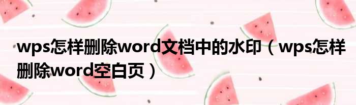 wps怎样删除word文档中的水印(wps怎样删除word空白页)