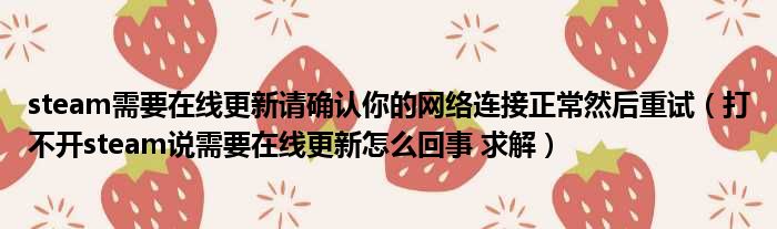 steam需要在线更新请确认你的网络连接正常然后重试(打不开steam说需要在线更新怎么回事 求解)