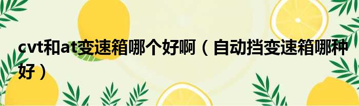 cvt和at变速箱哪个好啊(自动挡变速箱哪种好)