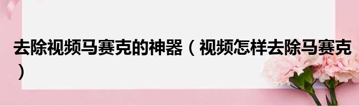 去除视频马赛克的神器(视频怎样去除马赛克)