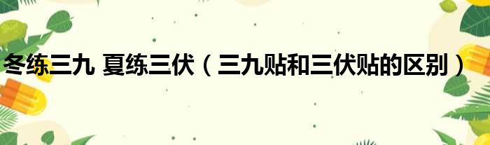 冬练三九 夏练三伏(三九贴和三伏贴的区别)