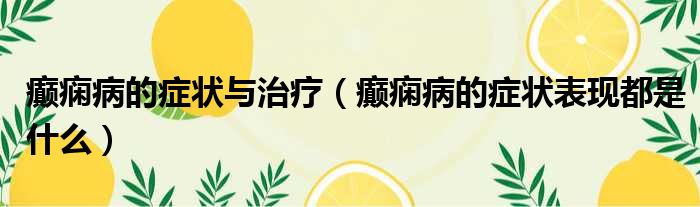 癫痫病的症状与治疗(癫痫病的症状表现都是什么)