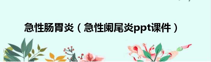 大家好,小东方来为大家解答以上的问题。急性肠胃炎,急性阑尾炎ppt课件这个很多人还不知道,现在让我们一起来看看吧!
