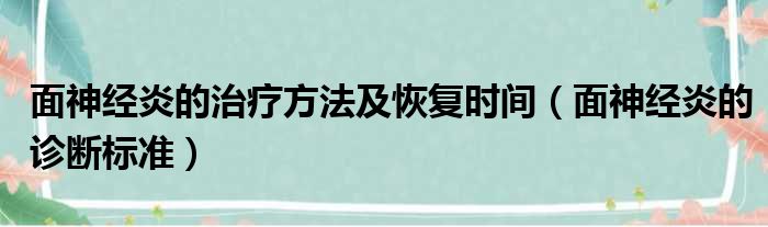 面神经炎的治疗方法及恢复时间(面神经炎的诊断标准)