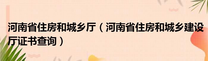 河南省住房和城乡厅(河南省住房和城乡建设厅证书查询)
