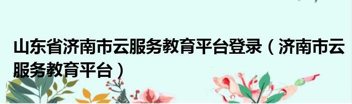 山东省济南市云服务教育平台登录(济南市云服务教育平台)